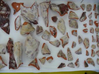 Allereerst zijn de nummers op de scherven aangebracht. Dit om straks de scherflocatie na de val in relatie te kunnen brengen met de scherflocatie in het beeld. We kunnen op die manier de uitwaaiering van de scherven en de manier van vallen met elkaar vergelijken.