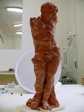 Nu we de scherven hebben gelocaliseerd en genummerd. Nu we voorzichtige relaties hebben kunnen leggen tussen de val en de hoeveelheid en type scherven. De vervaardiging van het beeld in kaart hebben gebracht en de sauslaag hebben bestudeerd kunnen we ons gaan richten op de behandeling.